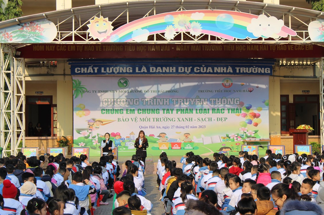 Để giúp học sinh tìm hiểu về các loại rác thải, cách phân loại rác thải đúng cách, sáng ngày 27/021/2023, trường Tiểu học Nam Hải phối hợp với Công ty TNHH MTV Môi trường đô thị Hải Phòng tổ chức Chương trình Truyền thông “Chúng em chung tay bảo vệ môi trường và phân loại rác tại nguồn”.