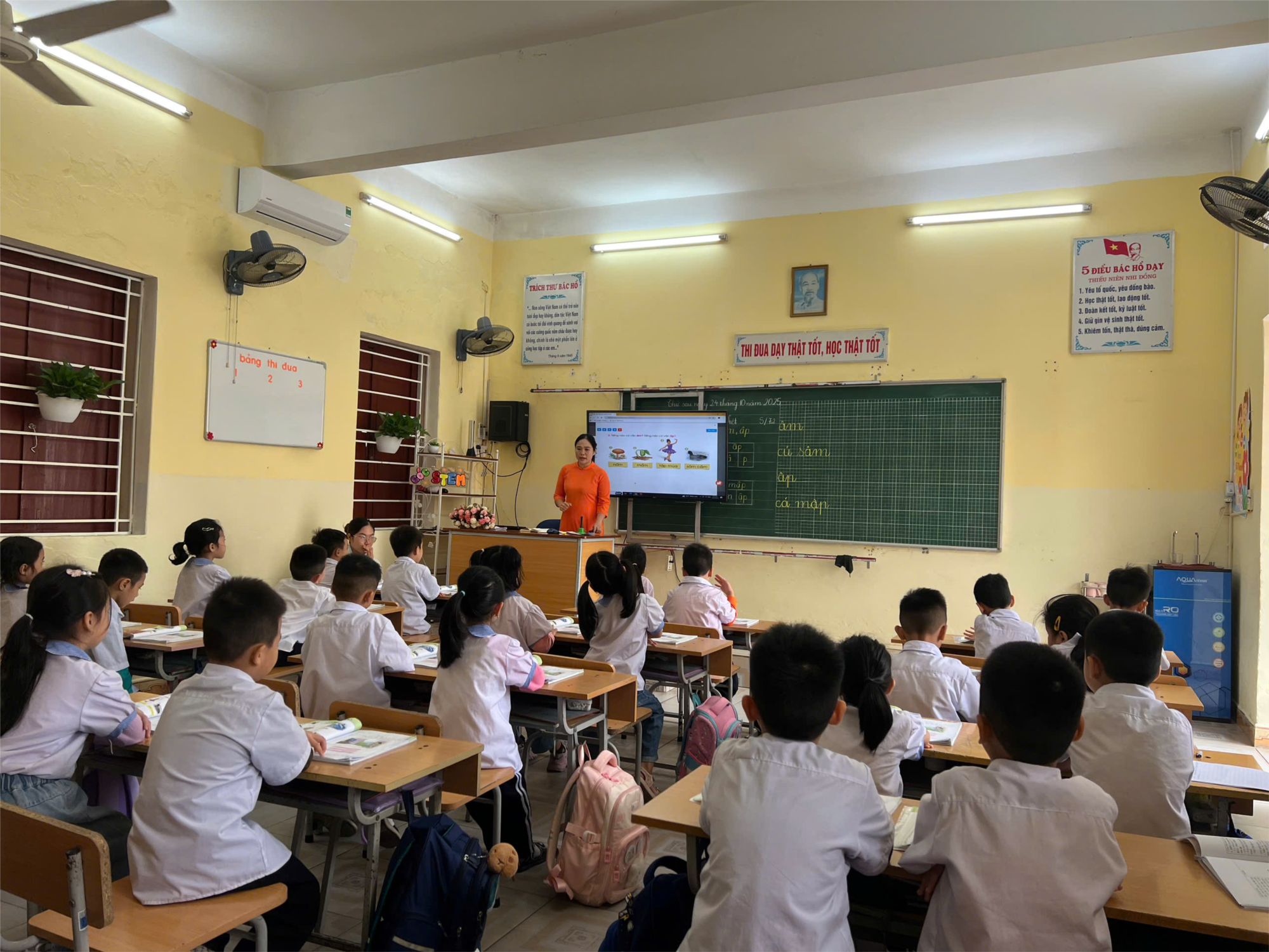 Không khí học tập trong lớp học rất sôi nổi. HS tích cực, chủ động, tự tin thể hiện hiểu biết của mình. Việc ứng dụng CNTT đã giúp HS không chỉ tiếp thu kiến thức một cách tự nhiên mà còn hình thành thói quen tự tìm tòi và kiểm tra kết quả học tập của bản thân.