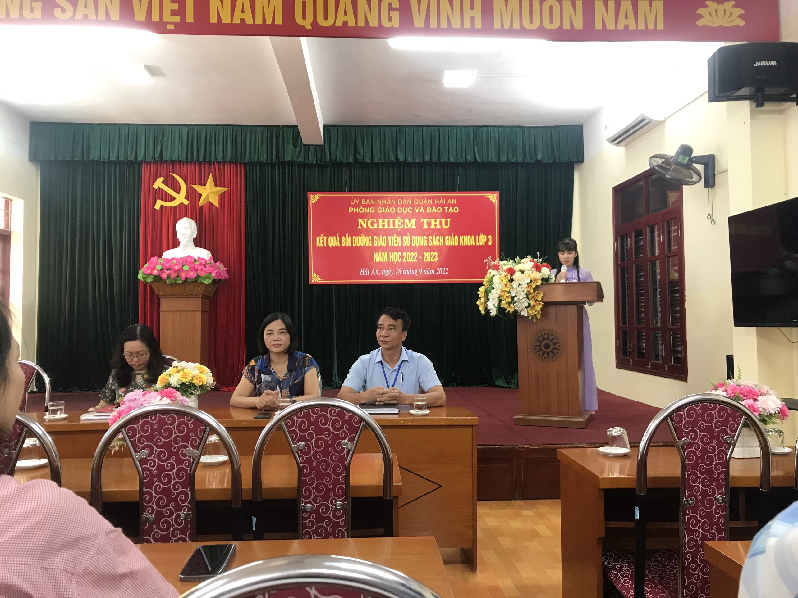 Sáng ngày 16/9/2022, tại trường Tiểu học Đằng Lâm, phòng GD&ĐT quận tổ chức nghiệm thu kết quả giáo viên sử dụng SGK lớp 3, năm học 2022-2023.