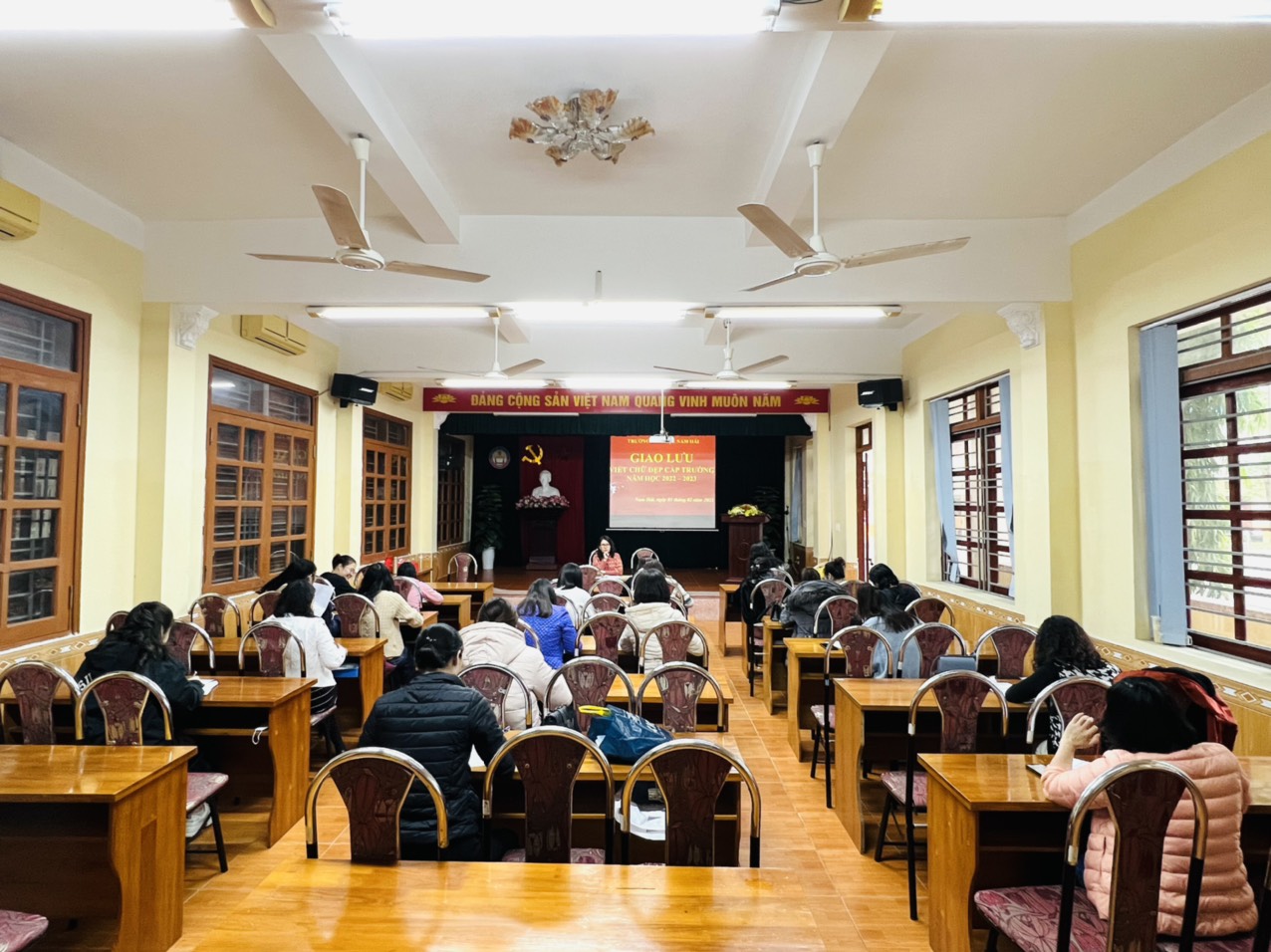 Chiều ngày 03/2/2023, trường tiểu học Nam Hải tổ chức Giao lưu giáo viên viết chữ đẹp cấp trường. Đây là một trong số các hoạt động nhằm thúc đẩy phong trào thi đua của giáo viên toàn trường, qua đó lựa chọn những giáo viên có bài thi đạt kết quả tốt để đăng ký tham gia kỳ giao lưu cấp Quận.