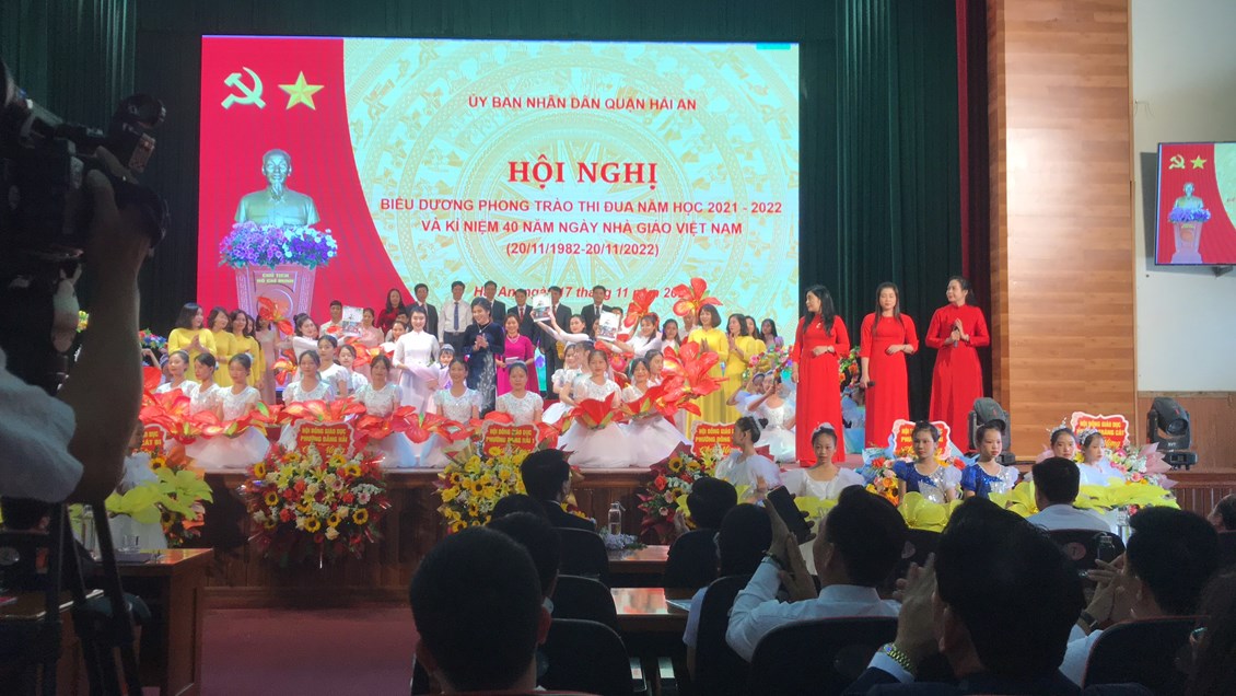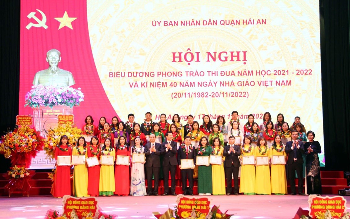 Sáng ngày 17/11 quận Hải An tổ chức hội nghị biểu dương phong trào thi đua năm học 2021 – 2022, tôn vinh thầy cô giáo tiêu biểu xuất sắc và học sinh đạt thành tích cao trong học tập. Tới dự Hội nghị có
