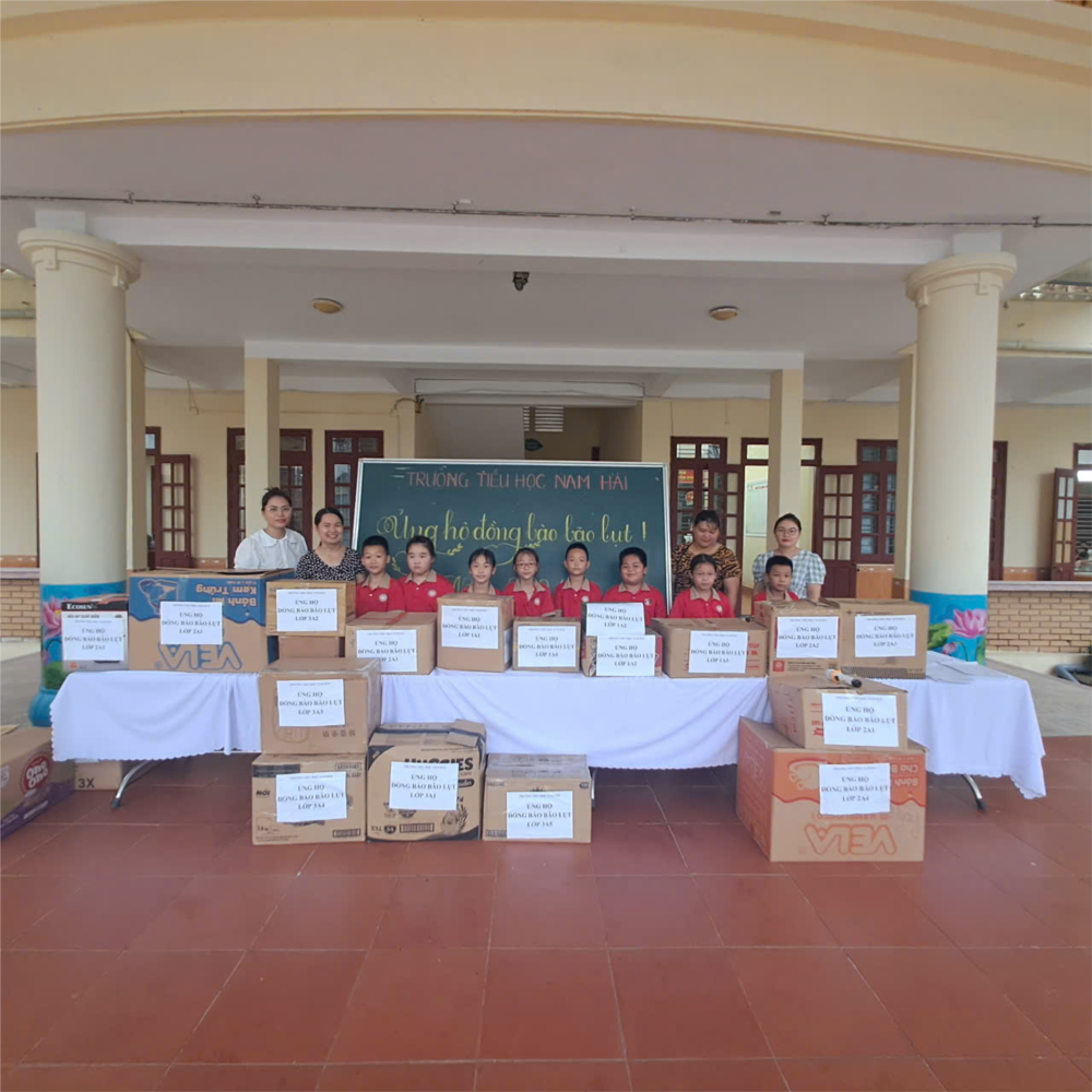 Sau khi nghe giáo viên Tổng phụ trách Đội của trường thông tin về tình hình bão, lũ; những thiệt hại mà bão số 3 gây ra đối với các tỉnh miền Bắc, các em học sinh trường Tiểu học Nam Hải đã được phát động ủng hộ. Các em thiếu nhi còn được xem những hình ảnh về bão, lũ; người dân các tỉnh miền Bắc phải gồng mình chống chọi với thiên tai; tinh thần đoàn kết, tương thân tương ái, giúp đỡ nhau lúc hoạn nạn của dân tộc Việt Nam…