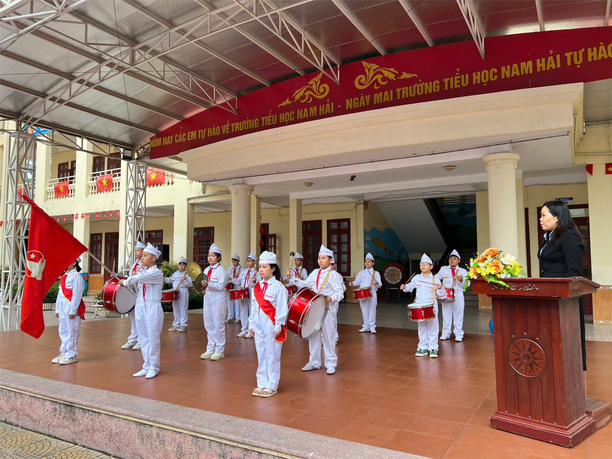 Sáng thứ 2 ngày 3/11/2025 Liên đội TH Nam Hải đã tổ chức lễ chào cờ tháng 11. Trong buổi lễ, thay mặt Liên đội, GV Tổng phụ trách đã tổng kết đánh giá việc thực hiện nền nếp, học tập và các hoạt động trong tháng 10, triển khai kế hoạch tháng 11.