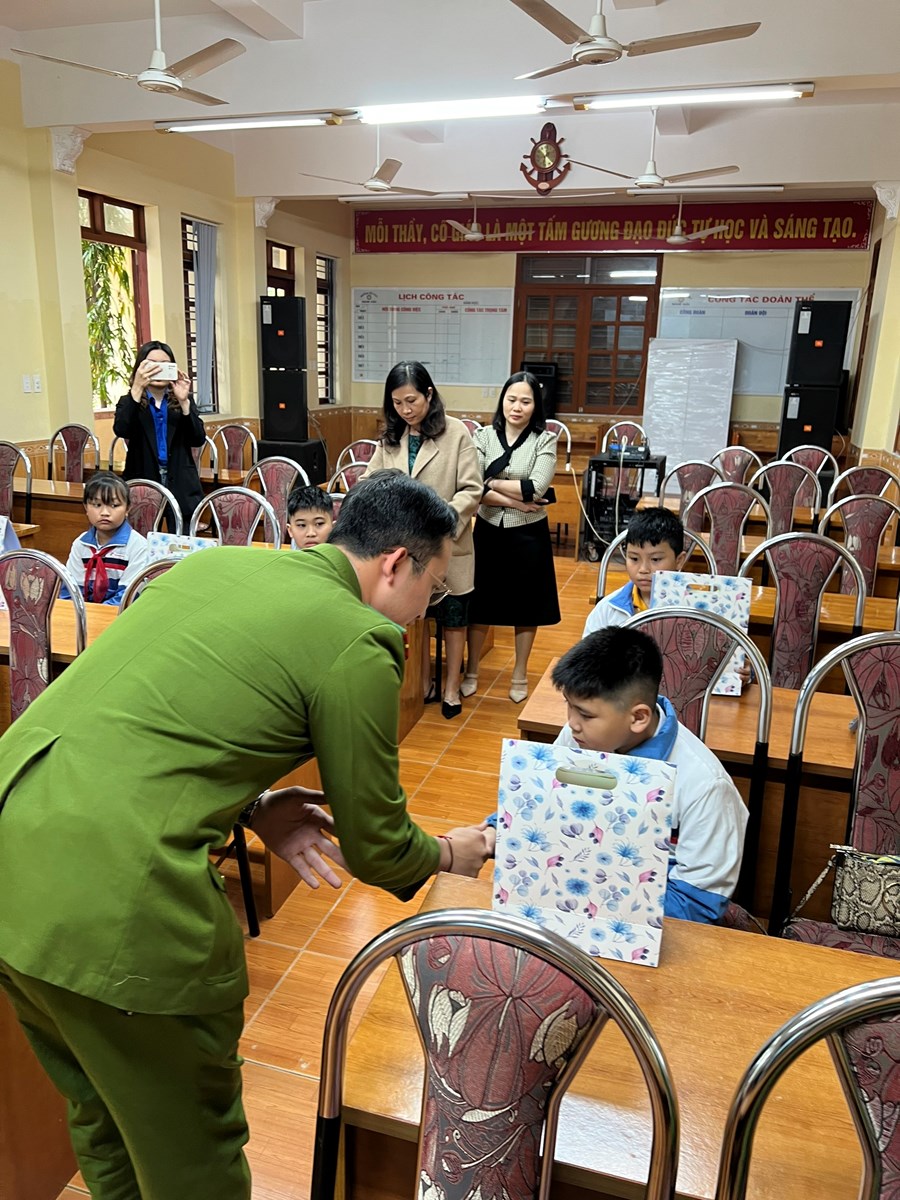 Kết thúc buổi giao lưu đồng chí Vũ Hưng Phát - Bí thư đoàn thanh niên công an Quận, cùng một số đ/c cùng đi đã tặng quà cho 08 em học sinh tiểu học Nam Hải. Món quà nhằm kịp thời động viên khuyến khích các em tiến bộ. Bởi lẽ, nhận thức được điều quan trọng hơn những món quà có tính vật chất là những điều hạnh phúc, vui vẻ nho nhỏ về tinh thần mang lại cho các em để các em có niềm tin vào tương lai, lấy lại hi vọng cho cuộc sống mới tốt đẹp hơn, đầy đủ hơn.