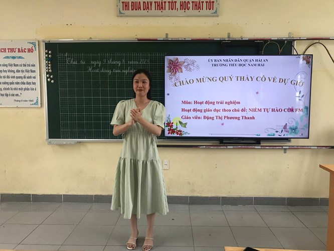 Đồng chí Đặng Thị Phương Thanh đã lên lớp tiết dạy minh họa môn Hoạt động trải nghiệm - Bài : Niềm tự hào của em (Tiết 2) .