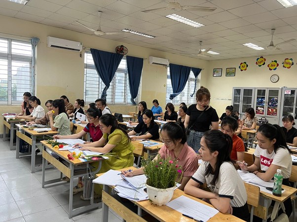 Sau giờ dạy, tổ chuyên môn họp, rút kinh nghiệm tiết dạy, toàn thể tập thể GV trường Tiểu học Nam Hải được học hỏi, chia sẻ trao đổi nhiều kiến thức và phương pháp dạy học mới áp dụng tiết học và thực tế sao cho đạt hiệu quả và phát huy được năng lực, phẩm chất cho học sinh để sẵn sàng cho năm học mới, năm học 2023-2024.
