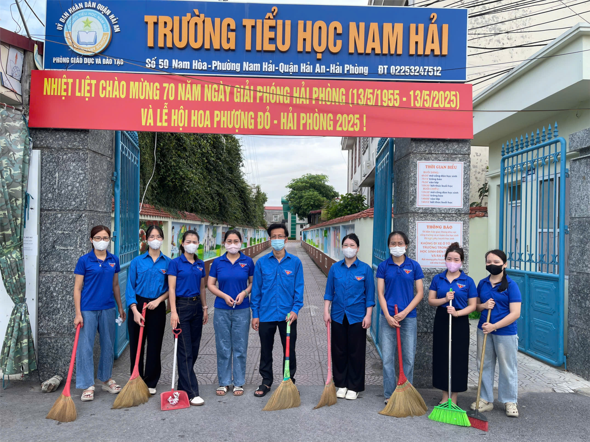 Thực hiện ý kiến chỉ đạo của Đồng chí Bí thư Đảng ủy phường về việc tiếp tục ra quân thực hiện phong trào "Ngày chủ Nhật Xanh – Sạch – Đẹp" trong điều kiện thực hiện chính quyền địa phương 2 cấp. Hôm nay ngày 6/7/2025, toàn thể cán bộ, giáo viên, nhân viên trường Tiểu học Nam Hải đã tổ chức tổng vệ sinh trường lớp, quét dọn, bóc dỡ quảng cáo trái quy định xung quanh khu vực trường học.
