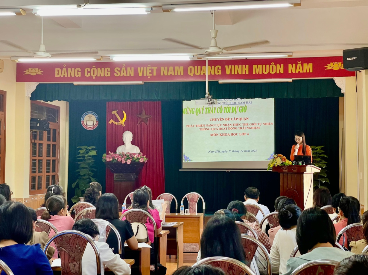 Chiều ngày 15/12/2023, trường Tiểu học Nam Hải đã tổ chức chuyên đề cấp Quận môn Khoa học lớp 4. Đến dự và chỉ đạo, có đ/c Trịnh Thị Thu Huyền - Phó trưởng phòng GDĐT quận, đ/c Nguyễn Thị Mai Thoa chuyên viên phòng GDĐT quận và các đồng chí đại diện Ban giám hiệu, khối trưởng chuyên môn và giáo viên khối 4 của các trường tiểu học trong quận Hải An.