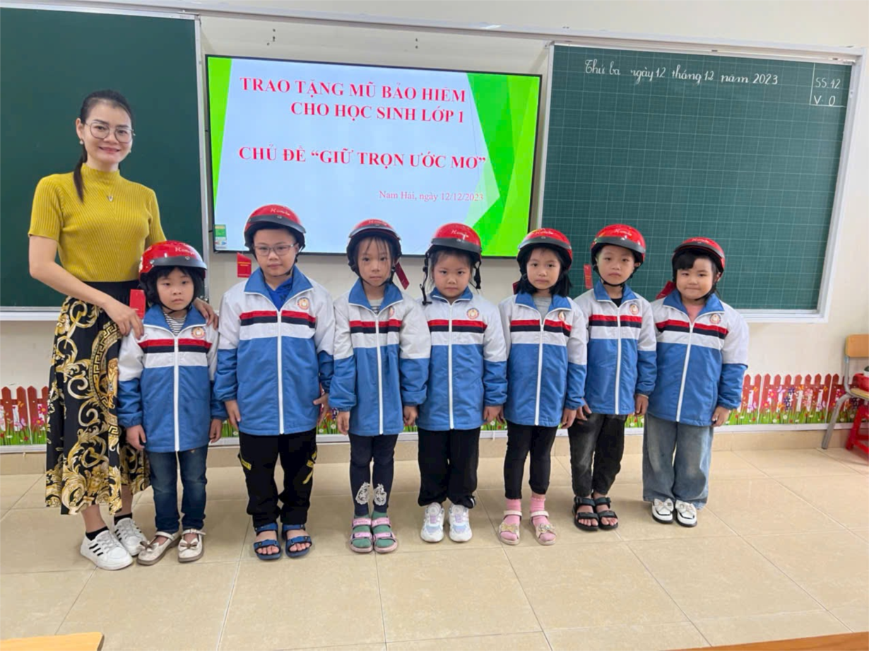 Sáng ngày 12/12, Trường Tiểu học Nam Hải phối hợp Ban An toàn giao thông (ATGT) tổ chức Lễ phát động Chương trình trao tặng mũ bảo hiểm cho học sinh lớp 1 năm học 2023 - 2024 với chủ đề “Giữ trọn ước mơ”.