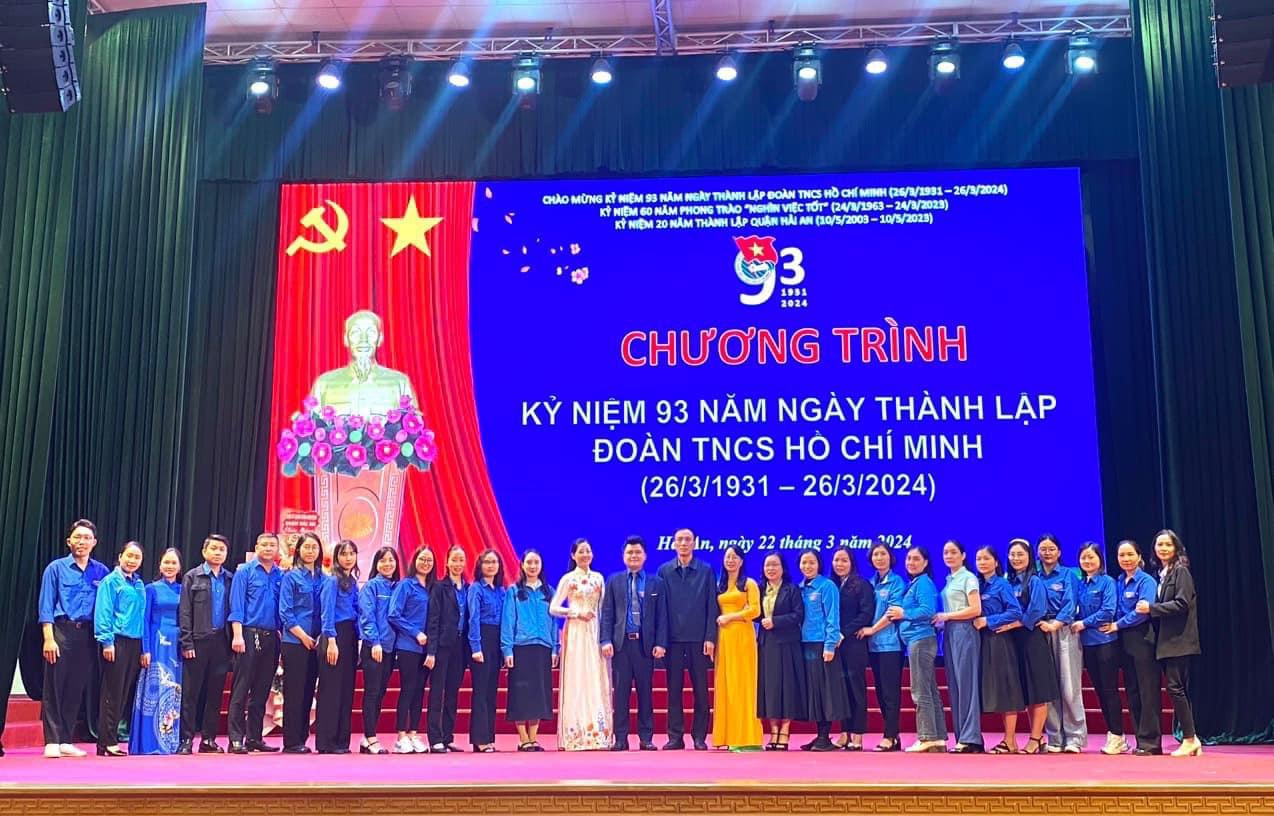 Nhân kỷ niệm 93 năm ngày thành lập Đoàn TNCS Hồ Chí Minh, hướng tới chào mừng Đại hội Hội LHTN Việt Nam các cấp nhiệm kì 2024 – 2029, chiều 22/3 Quận đoàn Hải An long trọng tổ chức Kỷ niệm 93 năm Ngày thành lập Đoàn TNCS Hồ Chí Minh (26/3/1931 - 26/3/2024), biểu dương thanh niên tiên tiến làm theo lời Bác năm 2023, biểu dương danh hiệu Học sinh 3 tốt, Học sinh 3 rèn luyện cấp quận năm học 2023 – 2024. Tới dự có các đồng chí: Nguyễn Thị Thuỷ - Phó Bí thư Thành đoàn, Phó Chủ tịch TT Hội LHTN Việt Nam thành phố, Nguyễn Văn Đảo - UVBTV, Trưởng Ban Dân vận Quận uỷ, Trần Thị Kim Oanh - Phó Chủ tịch UBND quận.