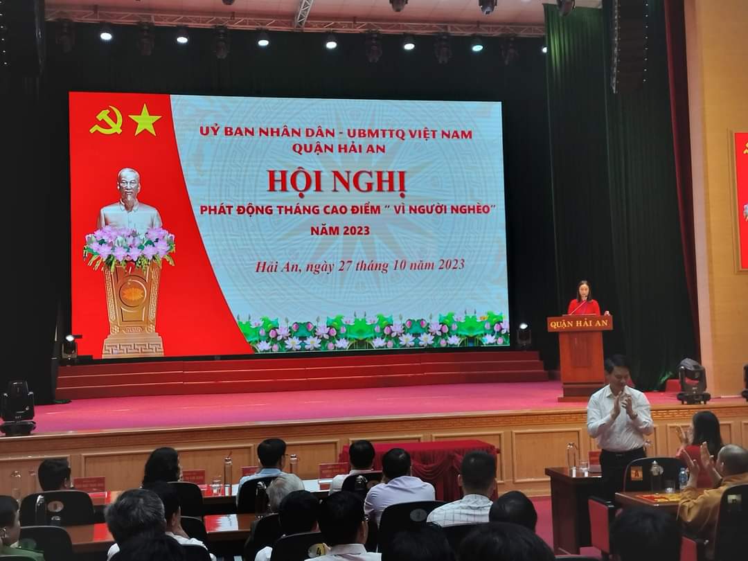 Hưởng ứng Tháng cao điểm “Vì người nghèo” năm 2023 và phong trào “Cả nước chung tay vì người nghèo, không để ai bị bỏ lại phía sau” do Thủ tướng Chính phủ phát động. Chiều 27/10, UBND, Ủy ban MTTQ Việt Nam quận Hải An tổ chức Hội nghị phát động ủng hộ Quỹ “Vì người nghèo” nhằm thiết thực giúp đỡ người nghèo, hộ cận nghèo, hộ có hoàn cảnh đặc biệt khó khăn vươn lên xây dựng cuộc sống ấm no, hạnh phúc.