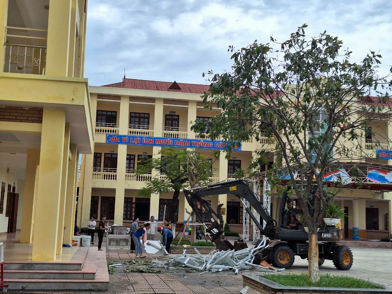 Được đánh giá là cơn bão với cường độ mạnh nhất từ trước đến nay, bão Yagi khi đổ bộ vào Hải Phòng đã gây ra những hậu quả vô cùng nặng nề. Trường Tiểu học Nam Hải hư hỏng toàn bộ nhà đa năng, hệ thống cửa kính vỡ tan, xé rách mái tôn dãy nhà C, ... song việc khắc phục những hậu quả trước mắt là việc cần làm ngay. Chiều ngày 8/9/2024, 100% CB, GV, NV nhà trường tích cực khắc phục hậu quả sau cơn bão để sớm triển khai hoạt động dạy học. Sau đây là một số hình ảnh:
