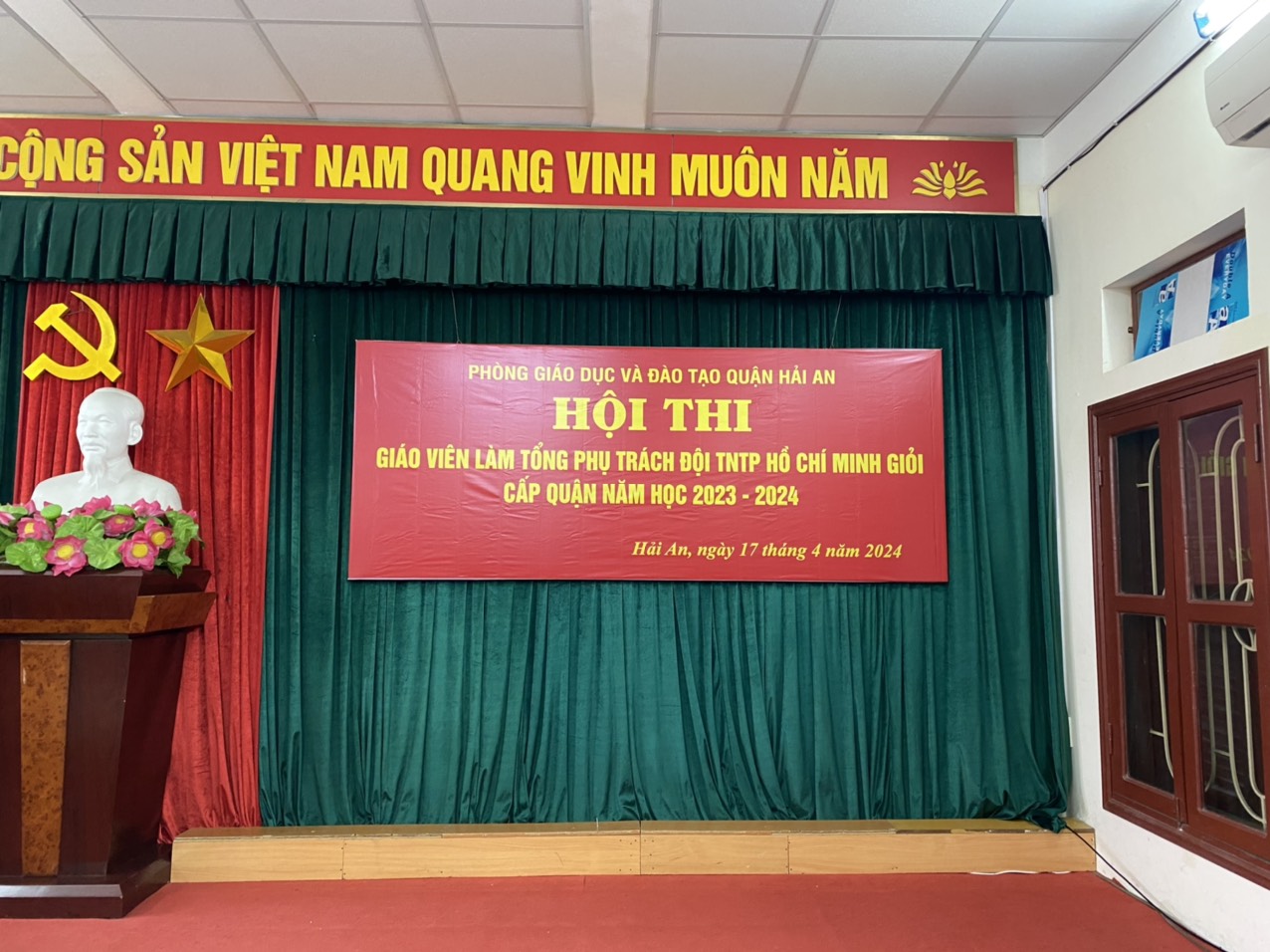 Thực hiện kế hoạch số 10/KH-GDĐT về việc triển khai Hội thi Giáo viên làm Tổng phụ trách Đội TNTP Hồ Chí Minh Giỏi cấp Quận năm học 2023-2024, chiều ngày 17/04/2024, tại điểm trường Tiểu học Cát Bi, 11 cô giáo là Tổng phụ trách đến từ các trường Tiểu học và THCS trong toàn quận tham dự Hội thi Giáo viên làm Tổng phụ trách Đội TNTP Hồ Chí Minh giỏi cấp quận năm học 2023-2024.