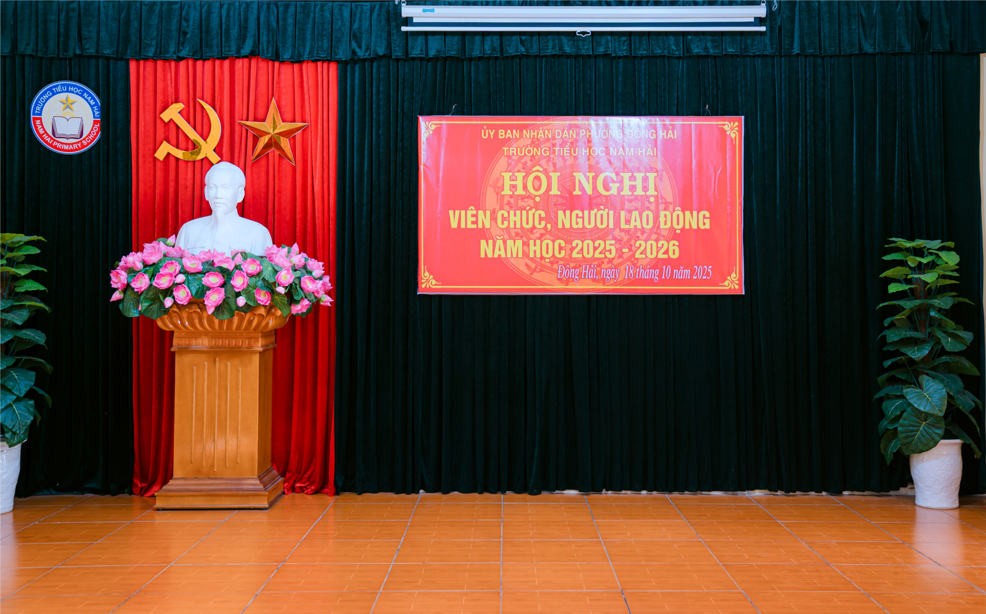 Thực hiện hướng dẫn của Sở Giáo dục và Đào tạo Hải Phòng về việc tổ chức Hội nghị cán bộ, viên chức, người lao động năm học 2025 – 2026, sáng ngày 18 tháng 10 năm 2025, Trường Tiểu học Nam Hải long trọng tổ chức Hội nghị viên chức, người lao động nhằm đánh giá kết quả hoạt động năm học 2024 – 2025 và đề ra phương hướng, nhiệm vụ trọng tâm cho năm học mới.