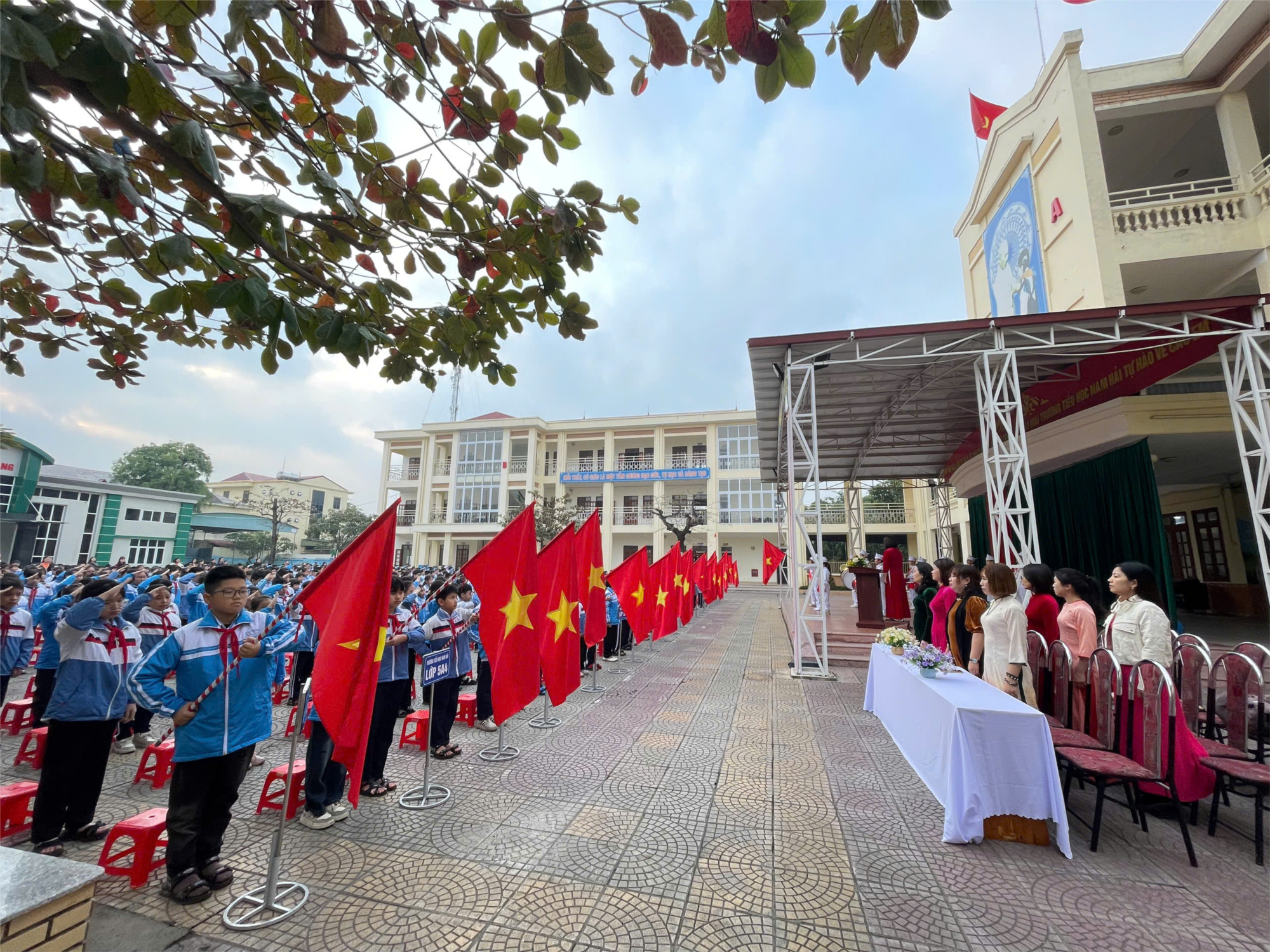 Sáng nay, trong không khí trang nghiêm và phấn khởi, thầy và trò Trường Tiểu học Nam Hải đã long trọng tổ chức Lễ chào cờ chào mừng Đại hội đại biểu toàn quốc lần thứ XIV của Đảng Cộng sản Việt Nam - Sự kiện chính trị trọng đại của đất nước.