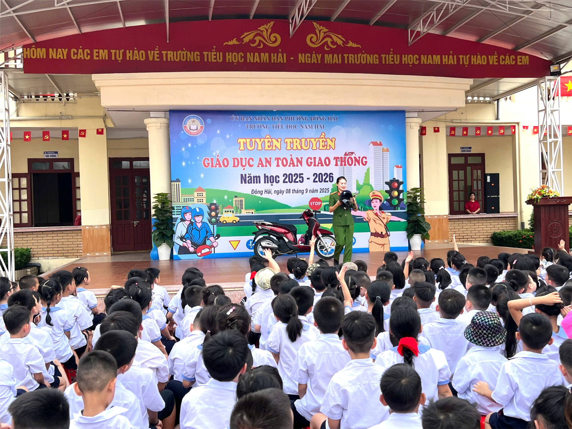 Thực hiện tháng cao điểm bảo đảm an toàn giao thông cho học sinh. Chiều ngày 10/09/2025 trường Tiểu học Nam Hải đã phối hợp với Công an phường Đông Hải tổ chức tuyên truyền pháp luật về trật tự và an toàn giao thông cho cán bộ, giáo viên và học sinh trong nhà trường.